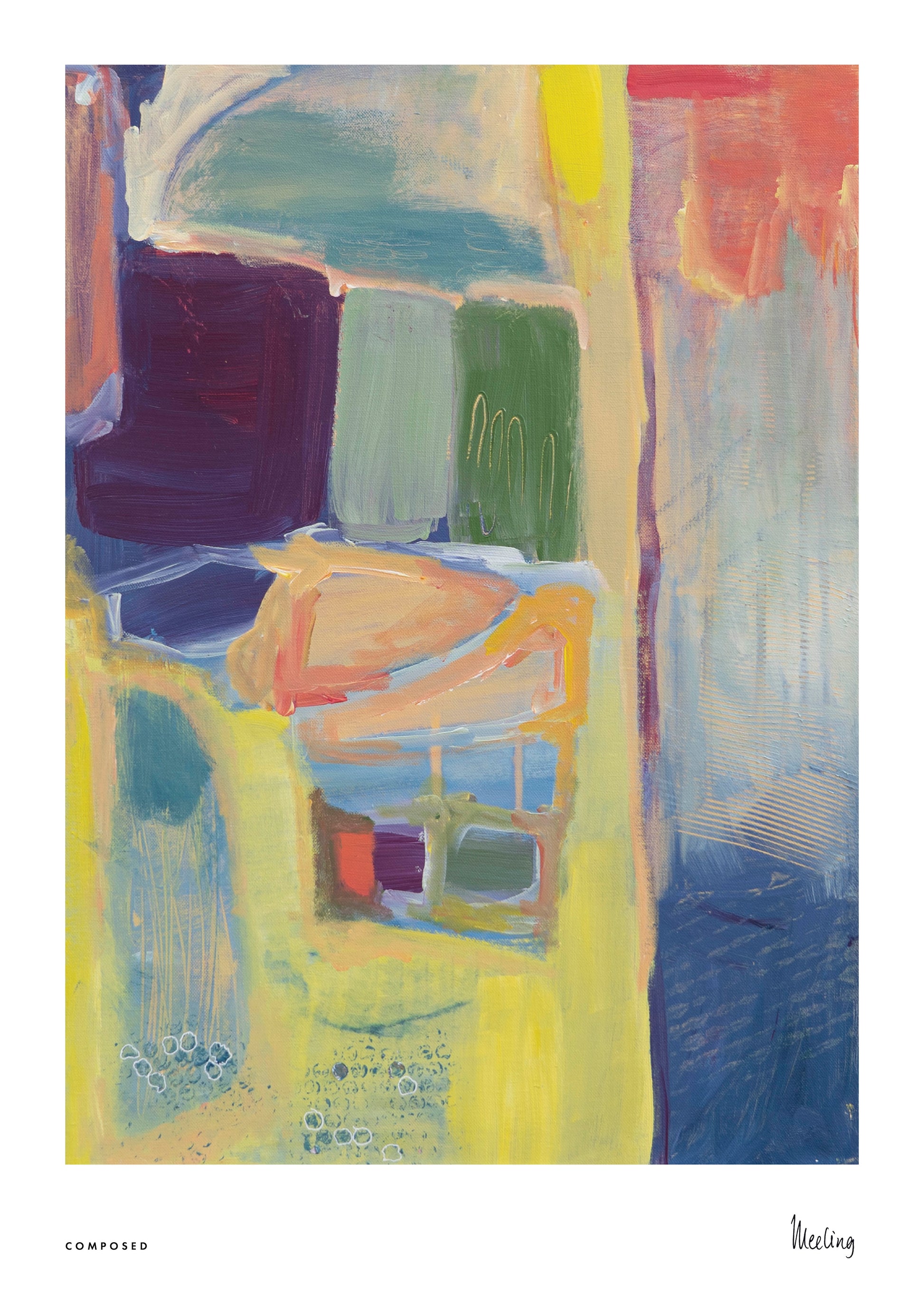 Upptäck posterversionen av “Composed”, ett lugnt och balanserat verk där former och färg fäster i stillhet. Med sin harmoniska struktur och dämpade energi förmedlar verket en känsla av inre styrka, stabilitet och eftertanke. Detta är en reproduktion av Meelings originalmålning i akryl och mixed media, nu tillgänglig i ett mer tillgängligt format.